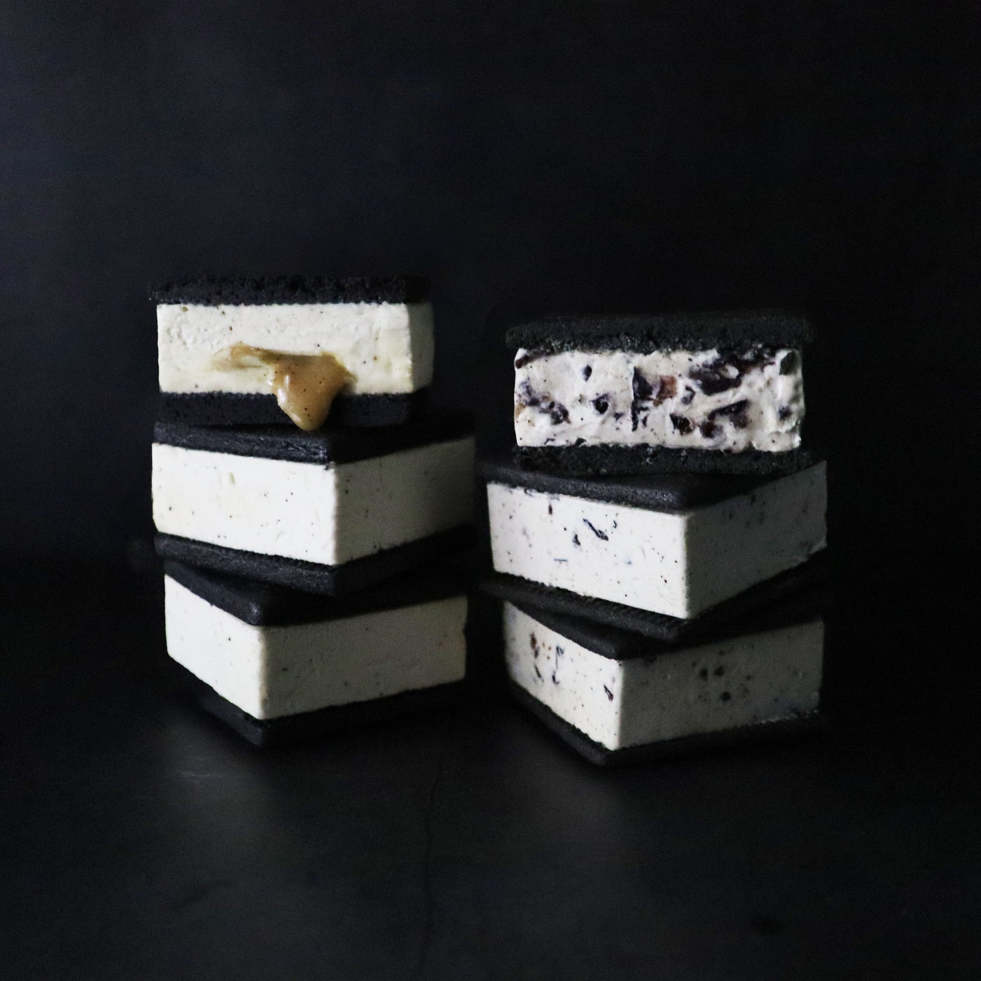 竹炭を練り込んだサブレでバタークリームをサンドしています。